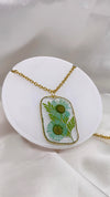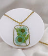 Foglie e piccoli fiori si allungano verso la luce, limpidi nella resina.