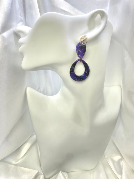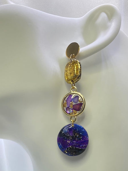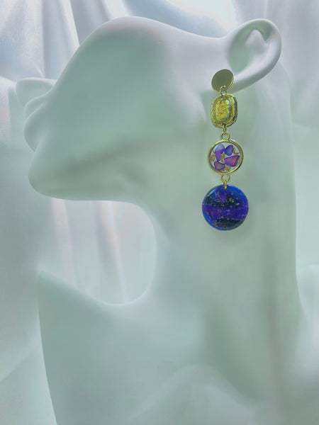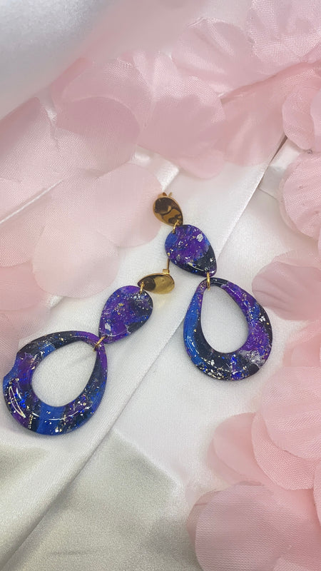 La collezione Galassie nasce per racchiudere la bellezza magnetica dell'Universo in un gioiello. Ogni paio di orecchini è come una costellazione unica, un frammento di cielo catturato nella resina, dove si intrecciano blu profondi, viola cosmici e bagliori dorati come stelle cadenti.
