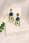 Con le piccole catene dorate che ricordano onde in movimento e pietre verdi come squame, questi orecchini evocano la facciata sinuosa di Casa Batló, conosciuta come la casa "dei draghi". Un gioiello che sembra respirare fantasie.