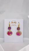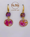 Orecchini con sfumature di fucsia e viola, dal pendente rotondo e dinamico. Ricordano un campo di papaveri mossi dal vento: liberi, vitali, felici di essere vivi.