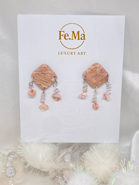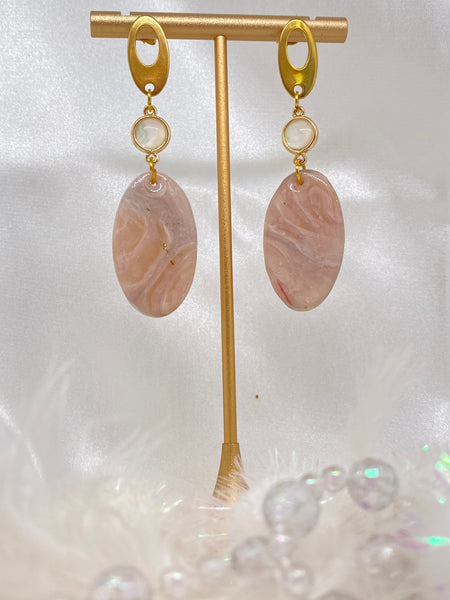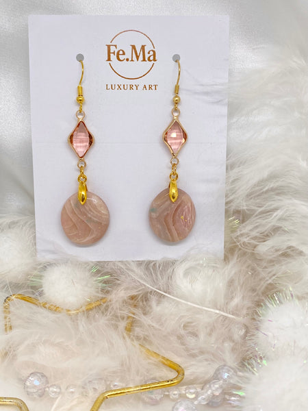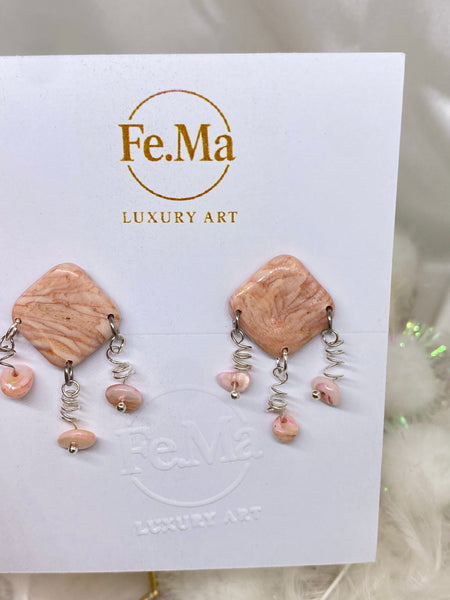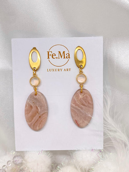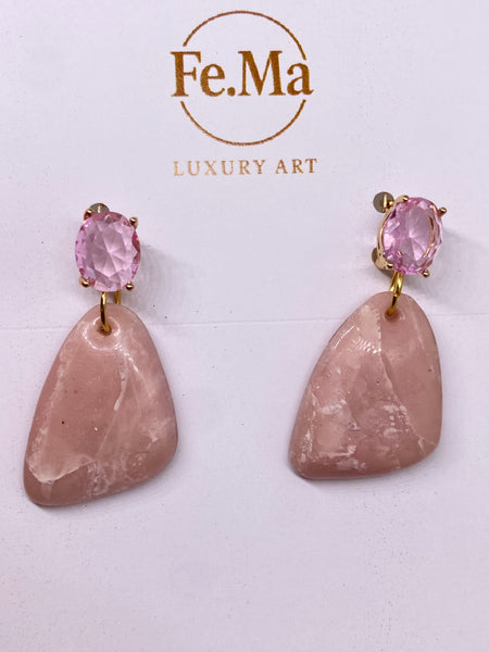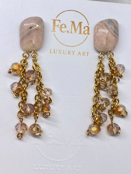La collezione Roseus Aurum è un inno alla femminilità più seducente: pietre dalle tonalità rosate, attraversate da trasparenze e venature bianche e dorate che ricordano un marmo delicato, ma vivo. Ogni pezzo nasce per raccontare il fascino dell'eleganza eterna, con un design che gioca tra luce, materia e sensualità. Orecchini pensati per ammaliare, trasformando la dolcezza del rosa in pura potenza seducente.