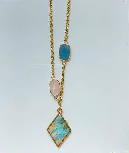 La collezione Terra è un inno al legame primordiale tra l'Anima e la Natura. Ogni creazione racchiude il respiro della Madre Terra: l'azzurro come cielo e acqua che ci avvolgono, il rosa antico come carne e radici, l'oro come scintilla vitale che attraversa ogni cosa. Sono gioielli che non si indossano soltanto, ma si vivono come piccoli talismani: donano armonia, risvegliano la pace interiore e ci ricordano che siamo parte di un ciclo eterno di bellezza e forza.