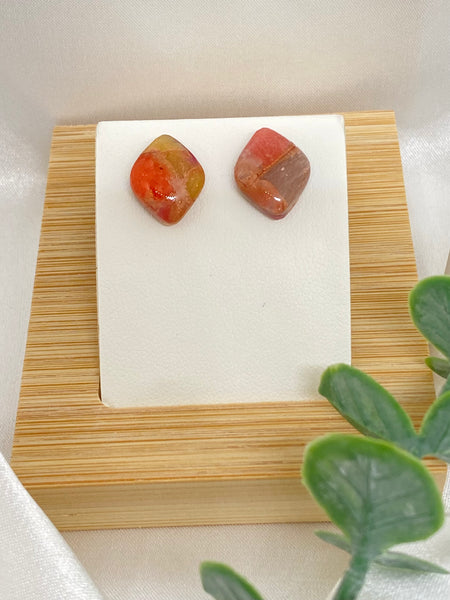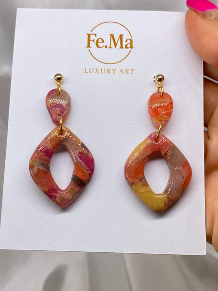 La Collezione Vulcano nasce dall'incontro tra energia e bellezza, dove i toni del rosso, arancio e oro si fondono in venature uniche come fuoco che scorre. Ogni paio di orecchini è un piccolo frammento di natura trasformata in arte: vibrante, intenso, irripetibile. Realizzati interamente a mano, questi gioielli leggeri ma di forte carattere sono pensati per chi ama distinguersi e portare con sé il calore e la forza della Madre Terra.