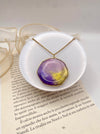 Leggero come una prima luce del mattino, questo gioiello cattura l'istante in cui l'oscurità si dissolve e il mondo si risveglia. Il viola tenue abbraccia un oro che sembra sole appena sorto, creando una danza delicata e poetica. È il simbolo dei nuovi inizi, delle rinascite silenziose, dei piccoli miracoli quotidiani che spesso passano inosservati. Indossarlo significa ricordarsi che ogni giorno può essere una nuova alba.