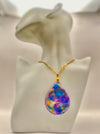 Questo pendente nasce come una piccola meditazione cristallizzata. Le sue sfumature di blu profondo si incontrano con il viola mistico in un punto esatto di silenzio: quel luogo interiore in cui tutto finalmente si placa. Le venature dorate non sono semplici dettagli: rappresentano la luce che sopravvive anche nei giorni più confusi. Il respiro che ritorna, l'intuizione che illumina. Indossarlo è come portare con sé una promessa di pace, un ritorno costante al proprio centro.