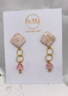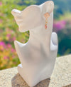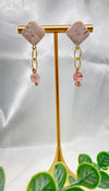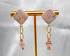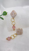 La geometria morbida e i cristalli rosa, che scendono leggeri evocano un respiro dolce, un soffio di serenità che accompagna chi li indossa.