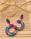 Semplici nella forma, profondi nell'essenza. La curva morbida del cerchio, unita ai colori iridescenti che fluiscono come acqua, crea un gioiello che parla di resa, fiducia, abbandono luminoso. "Namah" significa inchino del cuore: un atto di bellezza silenziosa.